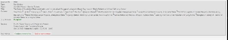 由吉林省腫瘤醫院院長程穎牽頭完成的“十二五”重大專項子課題——“洛鉑方案治療老年人小細胞肺癌群體藥代動力學及個體化給藥方案研究”研究,今研究結果投稿被世界肺癌大會接收,將在世界肺癌大會現場做相關主題的壁報展示。