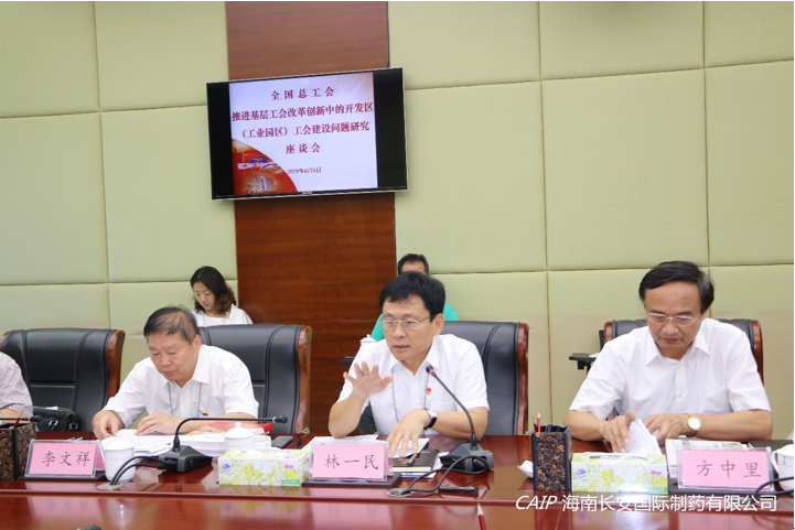 6月5日,全國總工會副主席、書記處書記蔡振華一行5人到海口國家高新區就“推進基層工會改革創新中的開發區(工業園區)工會建設問題研究”主題開展專題調研。省總工會黨組書記、常務副主席王全,市人大常委會黨組副書記、副主任,市總工會黨組書記、主席方中里,高新區管委會主任林一民等陪同。在高新區工會的推薦下,海南長安國際制藥有限公司作為企業代表出席本次調研會議。