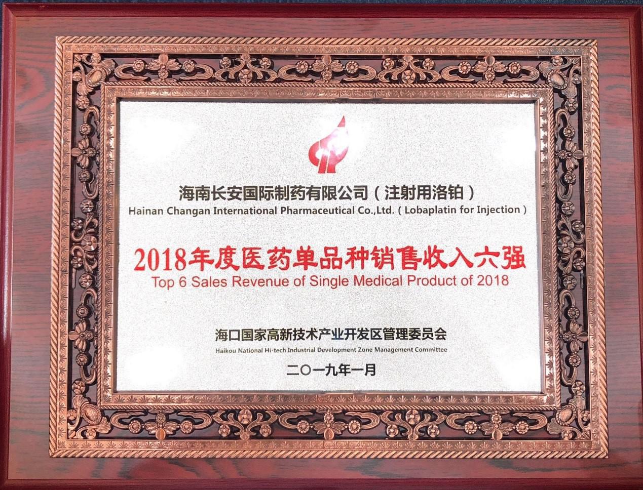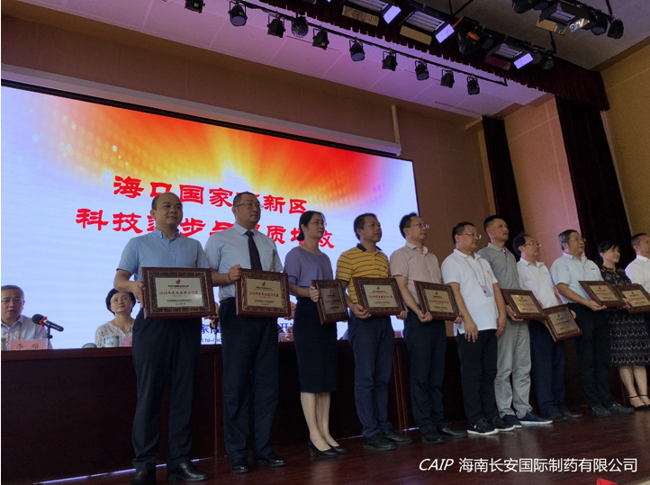 大會對科技進度與提質增效這兩方面表現突出的企業進行表彰,海南長安國際制藥有限公司榮獲“2018年工業發展十強”“2018年發展潛力之星”、、“2018年醫藥單品種銷售收入六強”稱號。