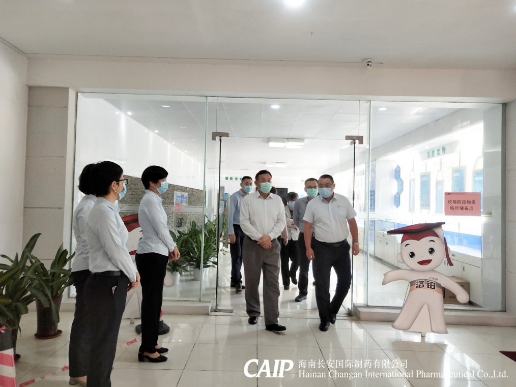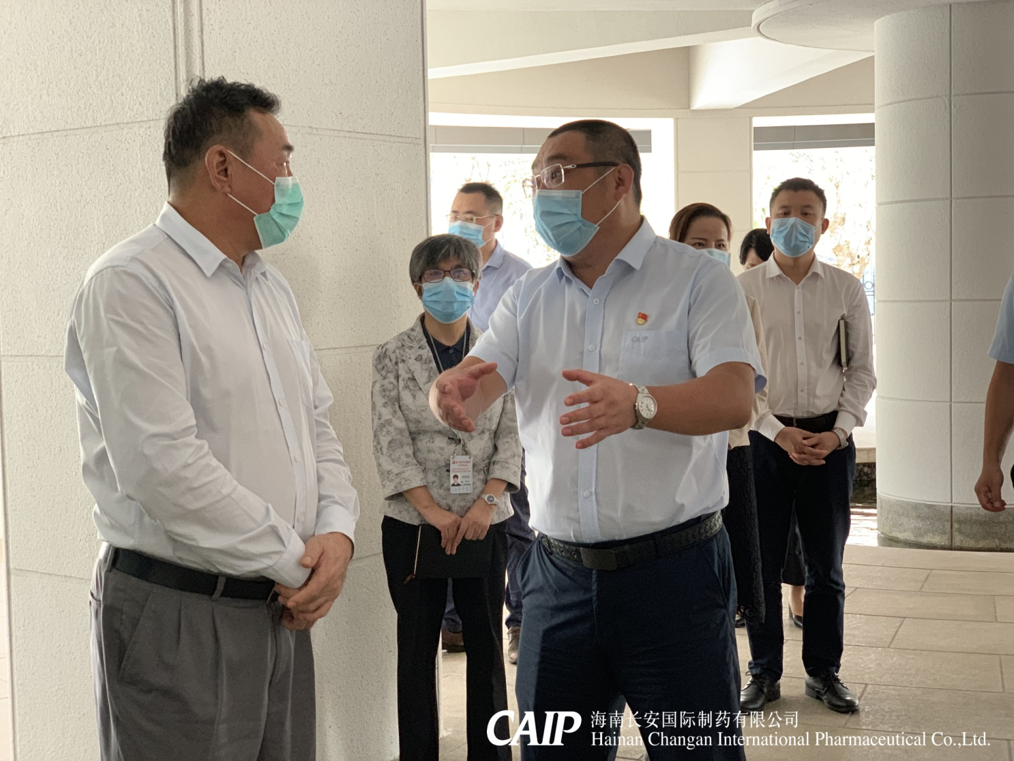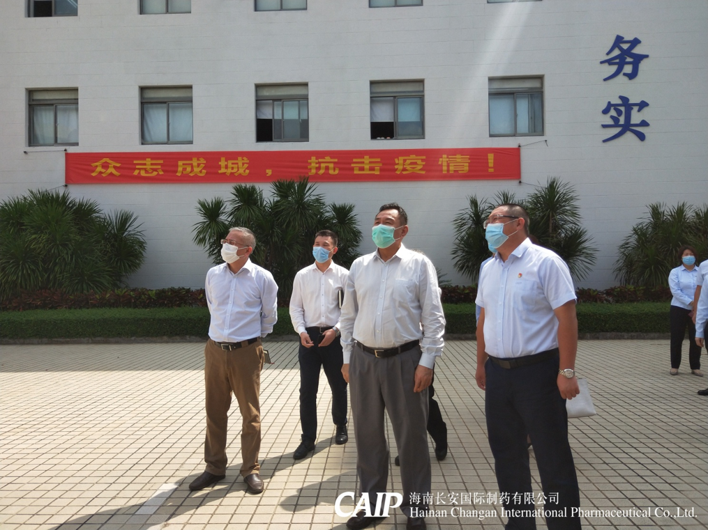 2020年3月2日上午,海口市鞠磊常務副市長等政府部門一行領導,來到海南長安國際制藥有限公司,就疫情防控期間重點企業復工復產及生產經營情況,進行實地走訪調研。