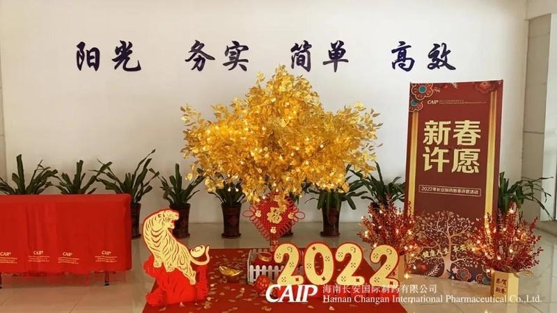 為了給長安人帶來濃濃年味,長安制藥推出了2022年新春許愿樹活動,精心裝扮的許愿樹出現(xiàn)在展廳門口,寓意著新年的祝福與勃勃生機。