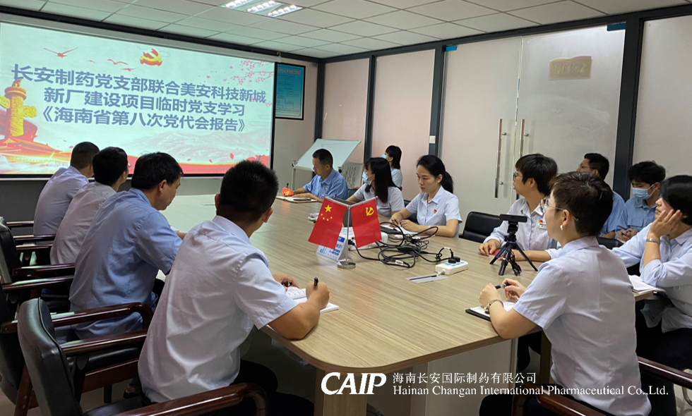 2022年5月26日上午,海南長(zhǎng)安國(guó)際制藥有限公司黨支部聯(lián)合海南長(zhǎng)安制藥美安科技新城新廠建設(shè)項(xiàng)目臨時(shí)黨支部召開(kāi)專題學(xué)習(xí)會(huì),學(xué)習(xí)《習(xí)近平總書(shū)記在海南考察調(diào)研時(shí)的重要講話精神》以及《海南省第八次黨代會(huì)報(bào)告》。